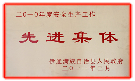 亚泰集团伊通水泥有限公司在2010年度伊通满族自治县安全生产管理工作中与亚泰集团伊通水泥有限公司土门岭水泥用大理岩矿分别荣获“先进集体”称号。