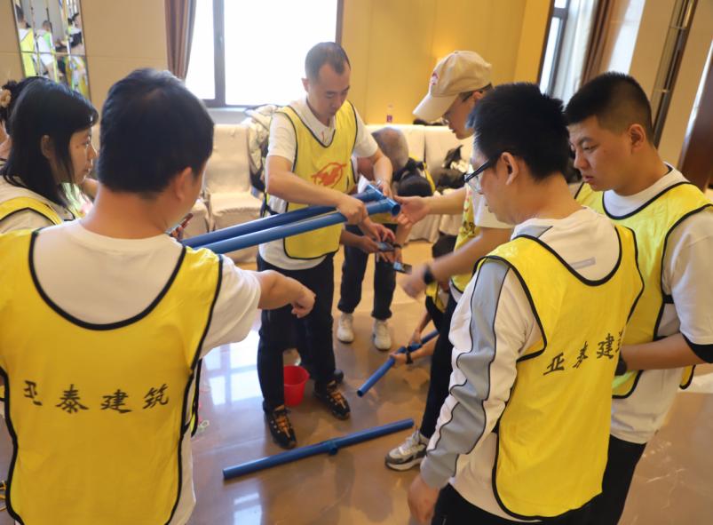 最后的共绘蓝图环节,员工分组协作,在有限的时间内拼接完成一幅完整、精美的画卷。过程中大家积极沟通,分工明确,充分展现了亚泰建筑高效的团队协作能力。本次拓展培训,在轻松愉快的氛围中,为员工赋予了新的活力,有效提高了团队的凝聚力和协作能力,也为后续培训课程营造了积极、团结的良好氛围。