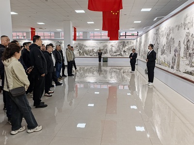 随后,众人来到《人民英雄杨靖宇百米长卷》画展现场。该画展以 “弘扬东北抗联精神 凝聚民族复兴力量” 为主题,由中共吉林省委宣传部等单位主办,通化师范学院等单位联合承办。长卷以绘画的形式生动展现了杨靖宇将军的英雄事迹和伟大的抗联精神,参观人员认真聆听讲解,不时驻足观看,被杨靖宇将军坚定的革命意志和顽强的斗争精神所打动。部分人员还在现场留言墙上写下自己的感悟。