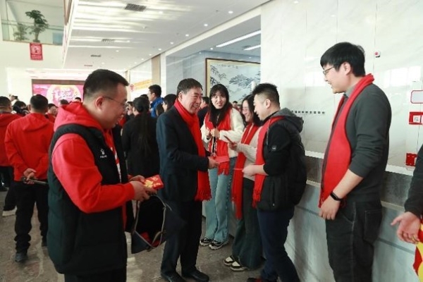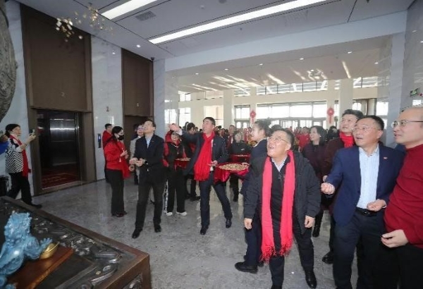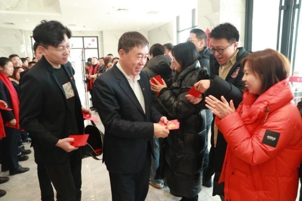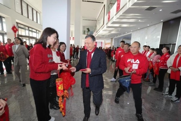 当天下午,宋总携高管团队在集团总部一楼大堂举办迎新春活动,集团公司各部门、医药集团、电商集团员工以及各个产业集团高管、园区内企业班子成员等参加了活动,整个大堂门庭若市,热闹非凡,每个人的脸上都洋溢着笑容,处处一派喜气洋洋的节日气氛。宋总代表集团公司高管团队,向到场员工致以新春的问候和美好祝愿。