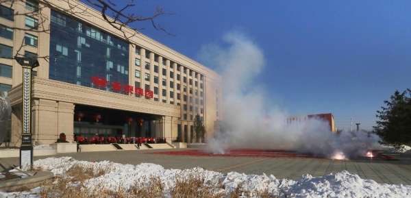 大家合影留念,并齐聚在集团公司正门广场,共同观看燃放烟花爆竹。鞭炮声声响彻天际,烟花朵朵冲向高空,美好和企盼在新的一年绽放。