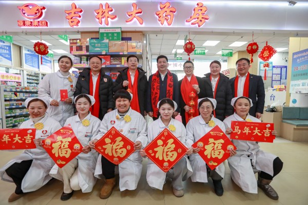 随后,陈铁志董事长一行走访了吉林大药房总部、门店以及亚泰超市门店,亲切慰问一线员工。在吉林大药房,他对团队过去一年的辛勤付出与经营成效予以肯定,鼓励大家在新的一年里坚定信心、再接再厉,为守护百姓健康、履行社会责任作出新贡献。在超市门店,他仔细询问春节商品供应、价格及服务质量,要求严把商品质量关,全力保障节日市场供应稳定,为市民提供优质便捷的消费体验。