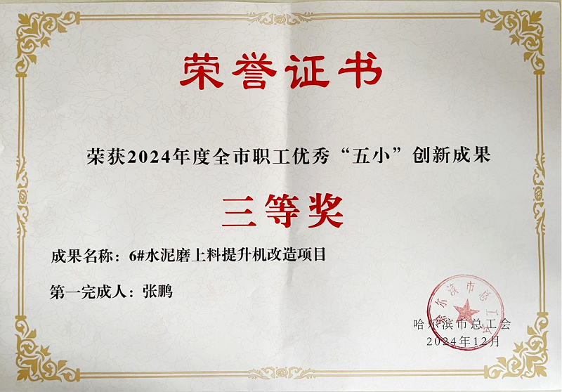 为大力激发公司广大员工建功立业的积极性和主动性,充分发挥一线员工的主力军作用,打造一支懂技术、勇钻研、会创新的产业技术人才队伍,亚泰集团哈尔滨水泥有限公司积极组织员工参加哈尔滨市总工会组织开展的“建功十四五 奋进新征程 振兴哈尔滨”主题劳动和技能竞赛活动,并荣获“五小”创新成果多个奖项。