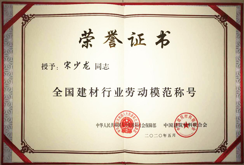2020年8月14日,全国建材行业先进集体、先进工作者和劳动模范表彰大会在北京召开。亚泰集团哈尔滨水泥有限公司被授予“全国建材行业先进集体”,公司副总经理宋少龙同志被授予“全国建材行业劳动模范称号”。